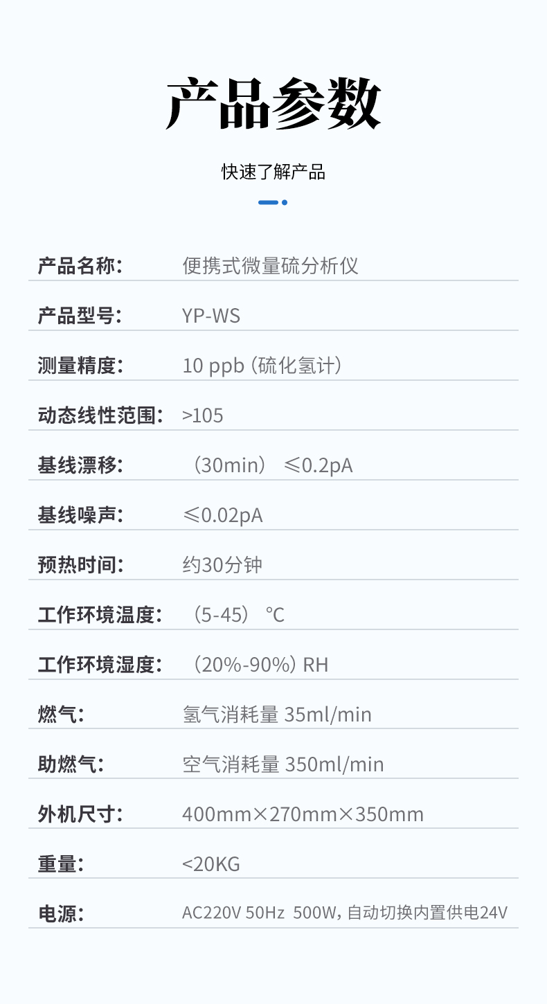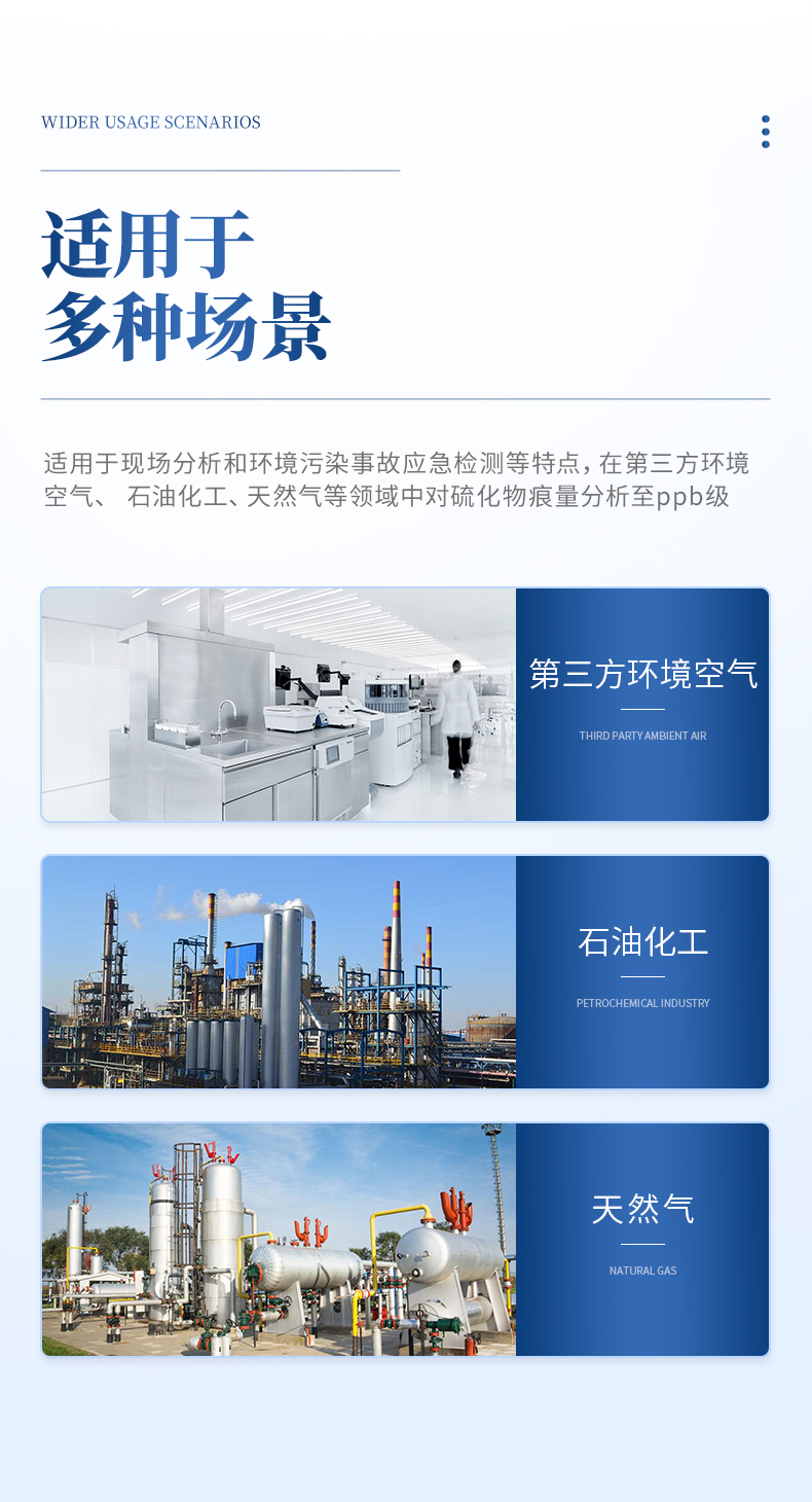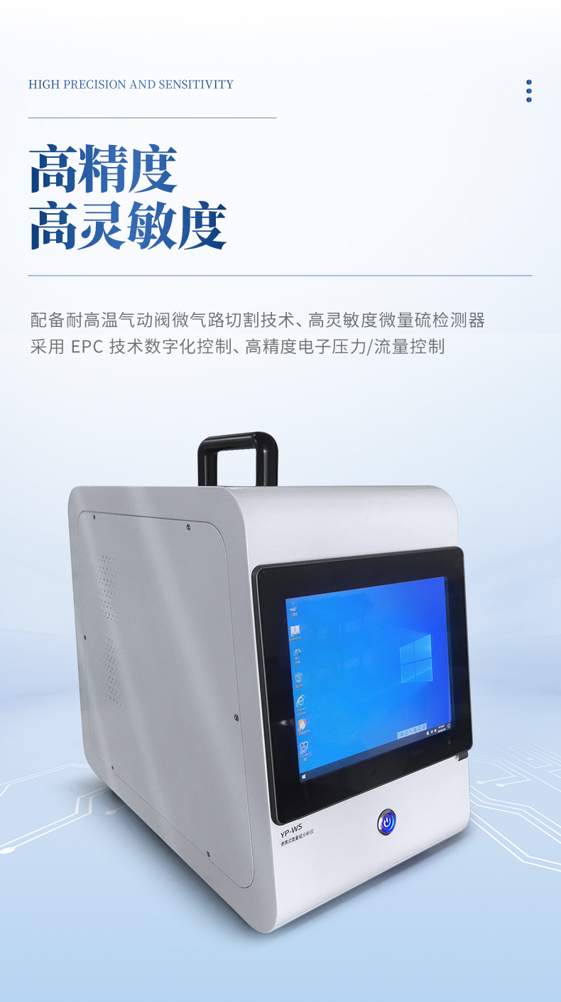 工天然氣等領域中對硫化物痕量分析至 ppb 級。體積小,重量輕、易攜帶。