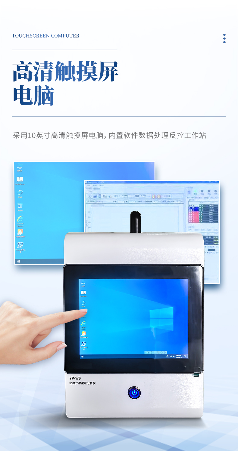 1. 采用 10 寸高清觸摸屏電腦,內置軟件數據處理反控工作站