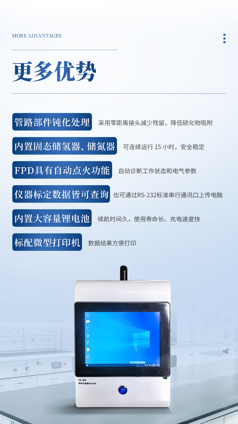 便攜式微量硫分析儀,集成電路高、分析速度快、機動靈活,尤其 適用于現場分析和環境污染事故應急檢測等特點,在第三方環境空氣、石油化