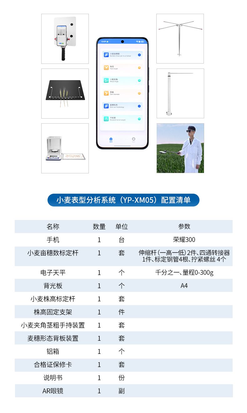 4)麥穗形態(tài)測(cè)定儀依托手機(jī)視覺(jué)技術(shù),通過(guò)AI圖像矯正算法一鍵獲取穗長(zhǎng)、小穗數(shù)等關(guān)鍵指標(biāo)。全系統(tǒng)實(shí)現(xiàn)田間快速取樣、批量分析及數(shù)據(jù)互聯(lián),為育種優(yōu)化、產(chǎn)量預(yù)測(cè)和功能基因解析提供智能化解決方案。