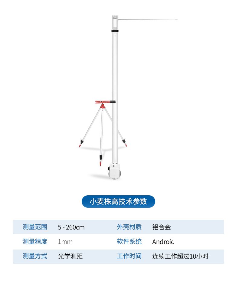 小麥株高測量儀是專為農業領域設計的一種便攜式、快速響應的農作物高度測量工具。采用內置光學測距技術,并通過內置算法進行現場分析,能夠實時獲取高度數據。