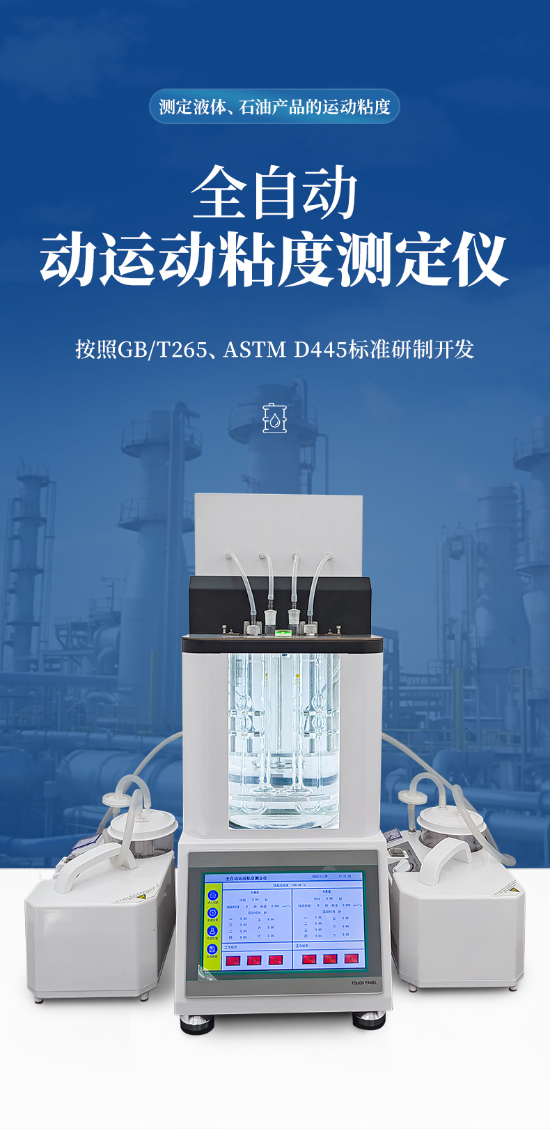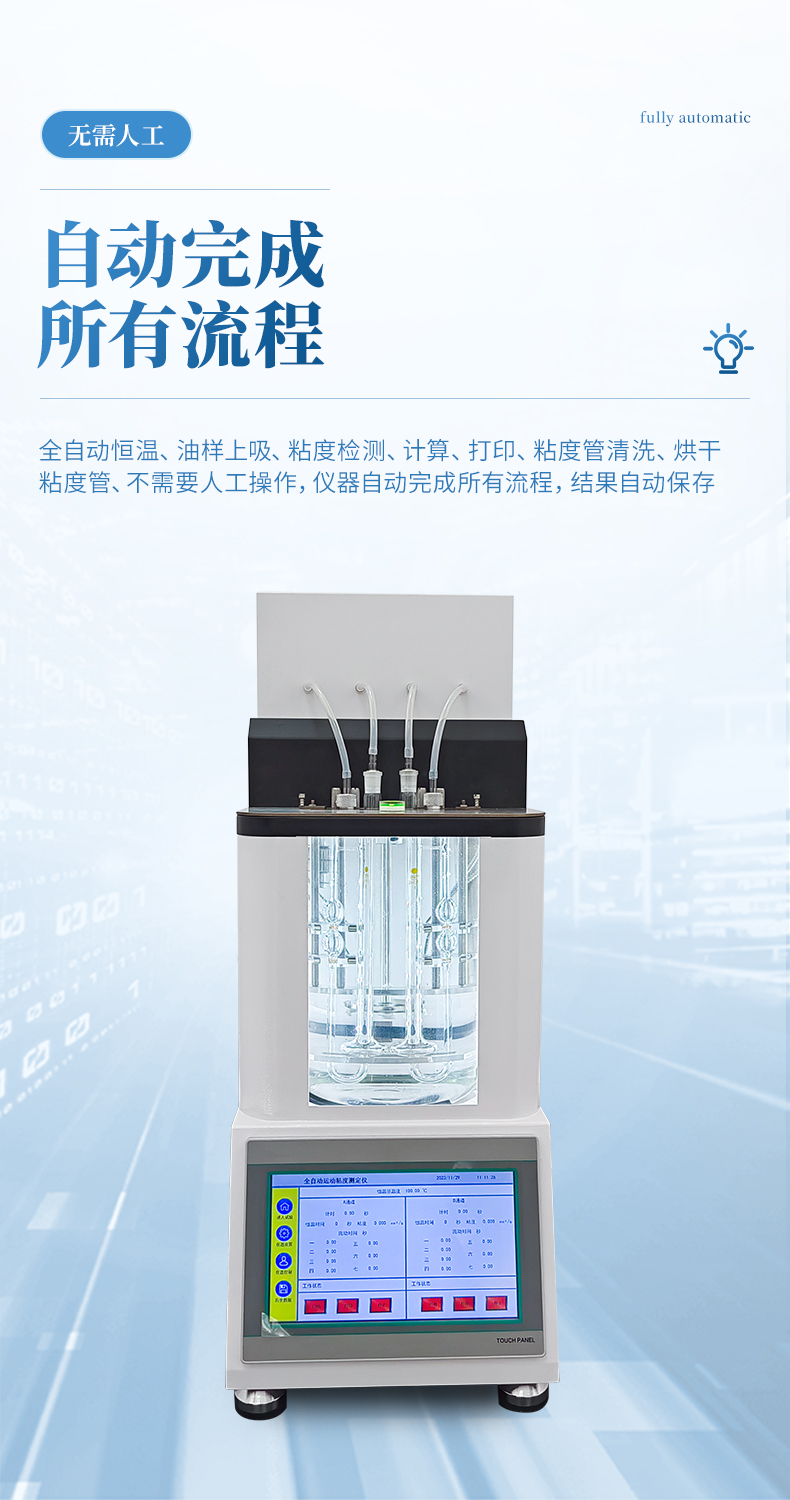 6.全自動恒溫、油樣上吸、粘度檢測、計算、打印、粘度管清洗、烘干粘度管、不需要人工操作,儀器自動完成所有流程,結果自動保存。