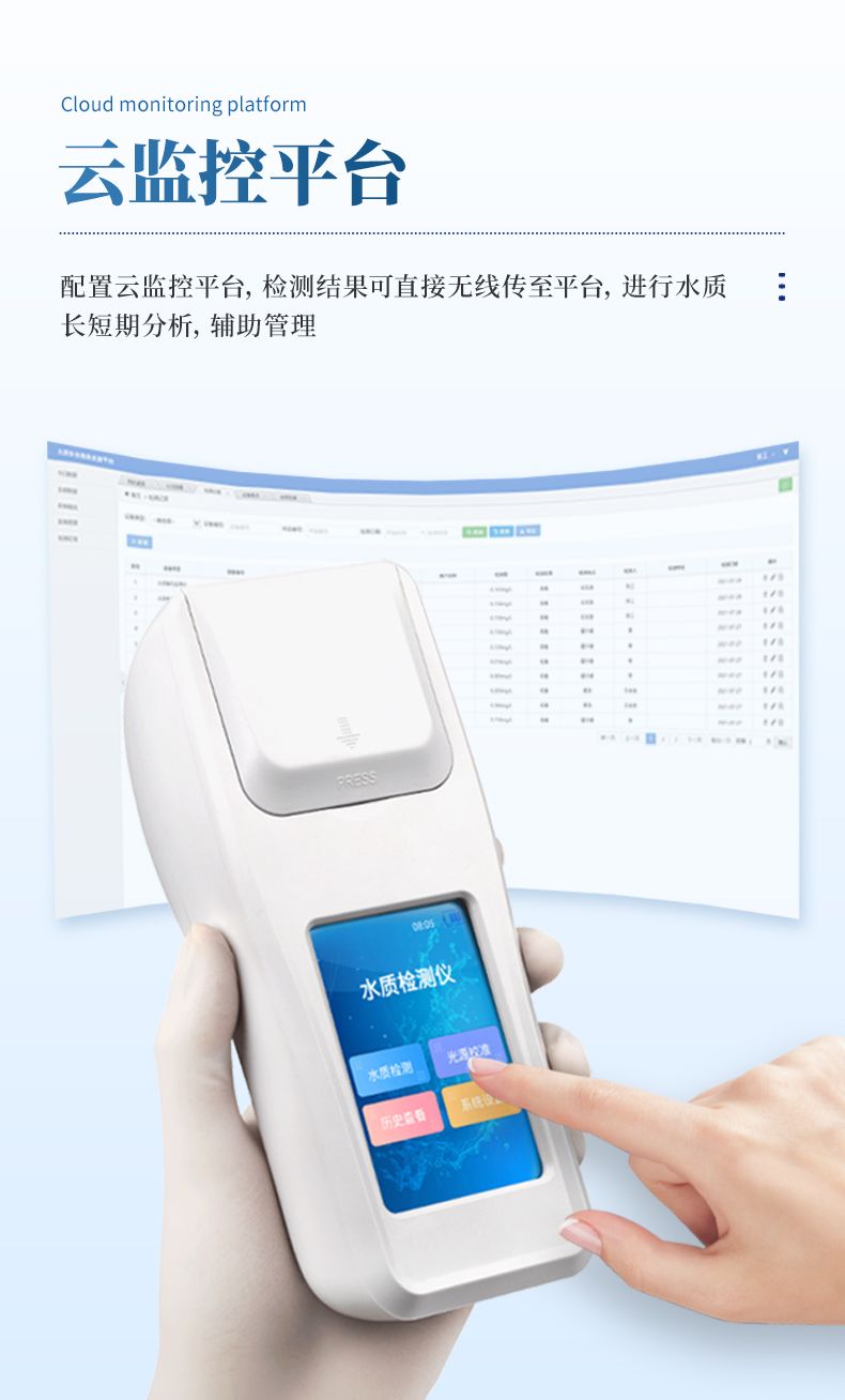 ②配置云監(jiān)控平臺(tái),檢測(cè)結(jié)果可直接無(wú)線傳至平臺(tái),進(jìn)行水質(zhì)長(zhǎng)短期分析,輔助管理。