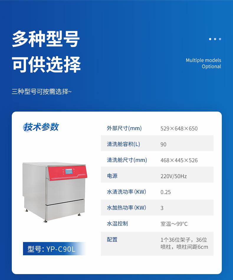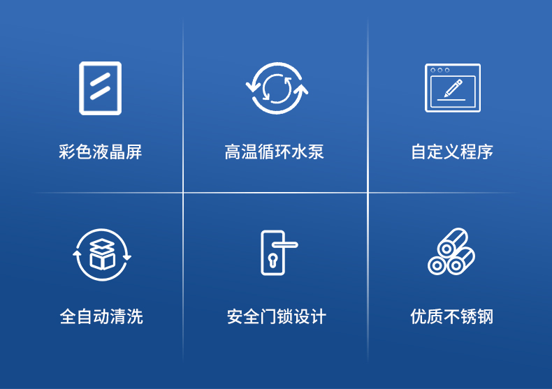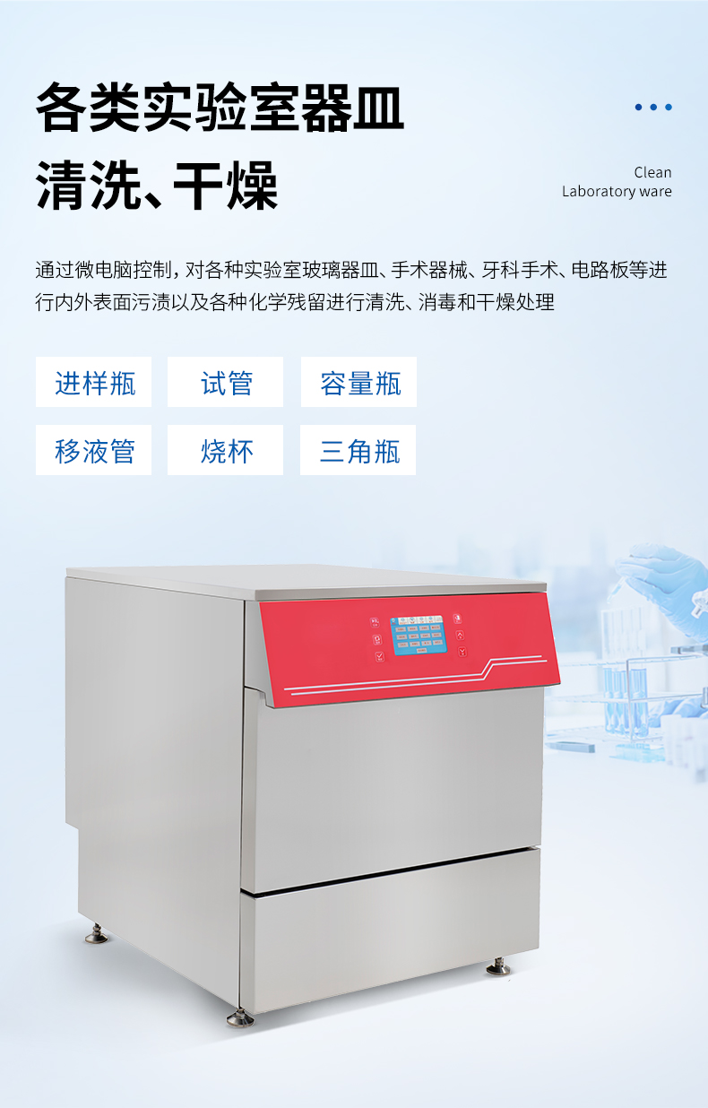 1.1全自動清洗設備,利用高溫、高壓水持續(xù)噴淋器皿內(nèi)外表面,結合清洗液的作用,清潔器皿內(nèi)外污物,進水、清洗、排水、烘干全自動完成,無需人工干預;