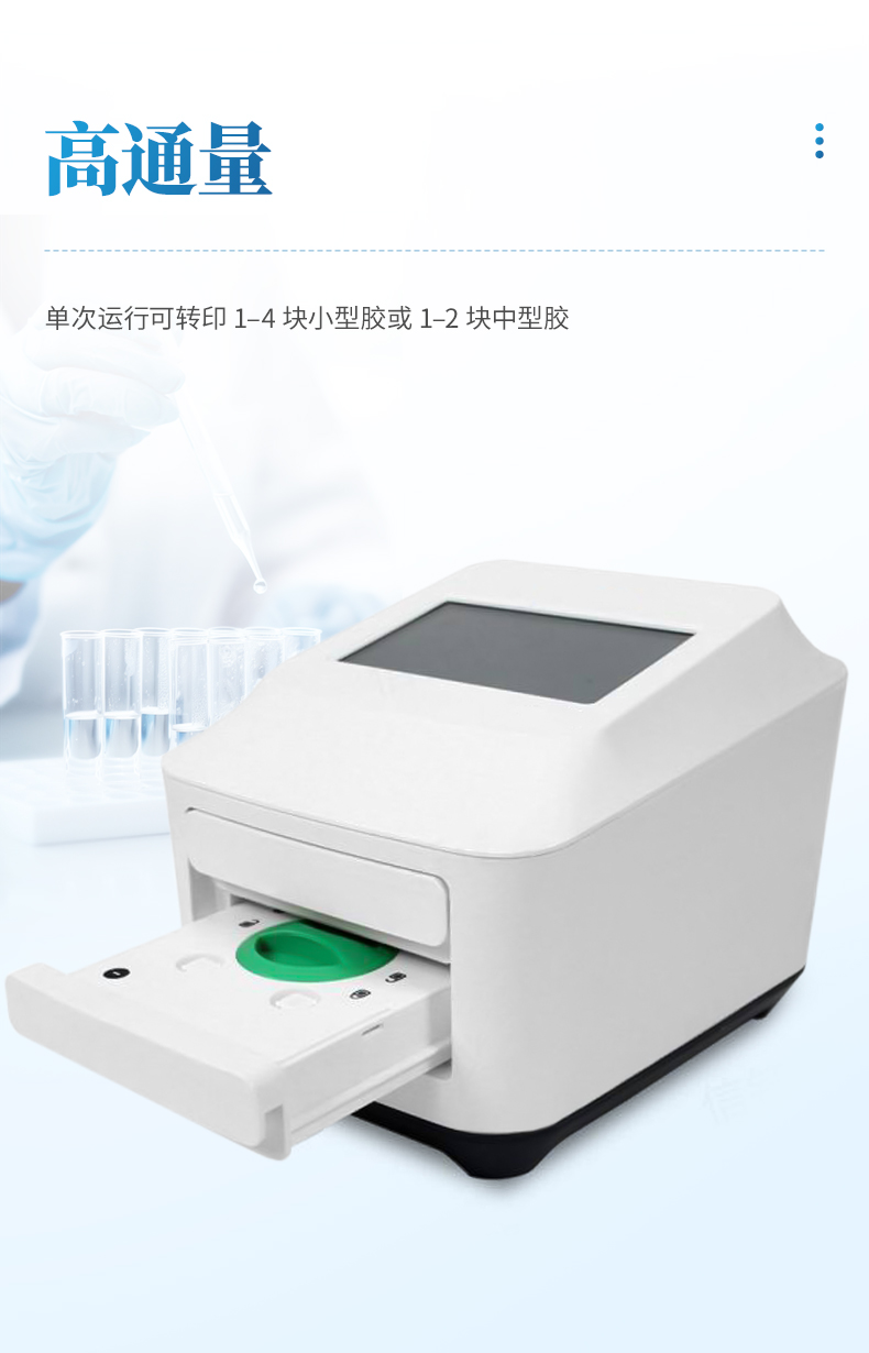 高通量 — 單次運行可轉印 1–4 塊小型膠或 1–2 塊中型膠