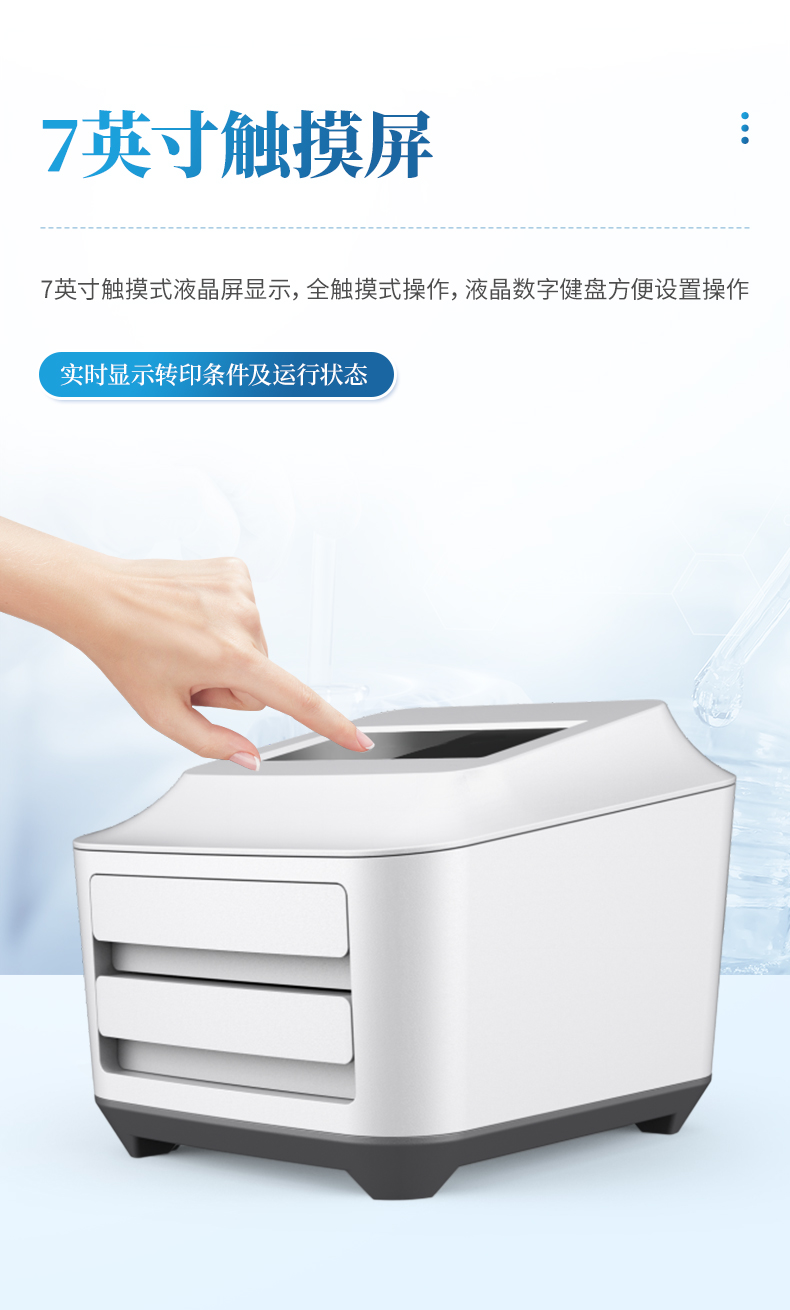 *7寸觸摸式液晶屏顯示,全觸摸式操作,液晶數字健盤方便設置操作,實時顯示轉印條件及運行狀態。
